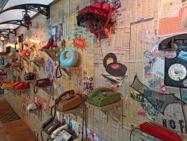 Un mur de 6m de long, sur lequel des téléphones de toutes générations trônent, s'entremêlent et s'affublent de leur plus bel "appareillage". Un parcours habité de sonorités connues de tous comme l'horloge parlante, ou cette voix qui vous rappelle inlassablement "ne quittez pas", le téléphone qui pleure quand vous n'êtes pas là, l'ultra confidentiel Téléphone Rouge ("voix" / "voies" directes entre les USA et l'URSS), Gaston qui ne répond décidément jamais, le téléphone du Père Noël, et le Téléphoneuu moi...aaa de Nicole, etc...NON mais "Allô ?...Quoi ! Découvertes pour certains, souvenirs pour d'autres, "Allô ?" est avant tout une œuvre fantaisiste, ludique et décalée. Accessible à tous les âges, le public est invité à décrocher les combinés pour écouter, entendre, parler, communiquer. Ouvrez grand vos oreilles car "Allô ?" vous parle...au téléphone !Par la Compagnie Progéniture