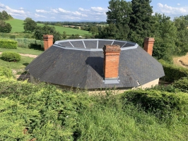 Le lavoir d’hiver est un dodécagonal du XIXème siècle. Ce lavoir en briques, pierres et bois présente une architecture exceptionnelle : cet édifice a une forme dodécagonale rare (il en existe seulement trois en France). Son toit pentu en ardoise permet de recueillir les eaux de pluie pour le lavage, tout en abritant l’espace situé près du bassin. Il reste trois cheminées sur quatre, qui permettaient de chauffer le lavoir et de fournir des cendres utilisées comme détergent. La quatrième cheminée a probablement été remplacée par une porte. Le lavoir est doté en tout de trois portes. A l’intérieur, les poutres en bois surplombant les cheminées et les planches à laver ont disparu puis ont été restituées dans le cadre de la restauration. Un second bassin utilisé pour la saison estivale, un petit bâtiment dépendant pour les lavandières, et des fils pour étendre le linge qui étaient situés aux abords du lavoir ont disparu.