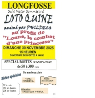 Venez nombreux participer à notre Grand Loto Quine Solidaire au profit de Loane , le combat d’une princesse !De magnifiques lots à gagner, une ambiance conviviale et un bel élan de solidarité vous attendent Buvette et petite restauration sur place.Ensemble, soutenons Loane dans son combat