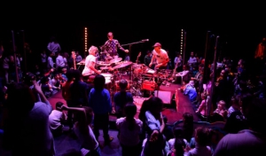 Pas de blabla, que de la musique ! Ourk est un métissage musical porté par trois musiciens et leurs instruments bricolés, dans un tourbillon sonore qui mêle krautrock, électro, rock’n’roll et cumbia. Inspiré par le mouvement tropicaliste brésilien, le spectacle propose un voyage immobile, de la moiteur d’une capitale sud-américaine à une plage ensoleillée, cocktail (sans alcool) à la main.Entouré par le public, Ourk invite petits et grands à danser, sauter, faire la fête.Une expérience rythmique, visuelle et festive à partager en famille ou entre amis. Dépaysement garanti, ambiance irrésistible assurée !
