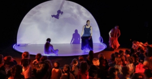 Par la Compagnie NGC25 de Hervé Maigret, assisté de Julie Cloarec-Michaud, avec Emilia Benitez (danse, voix et musique en direct), Julie Cloarec-Michaud (danse), Nathalie Licastro (danse), scénographie Cyrille BretaudLes Mamans de la Lune est un voyage musical et chorégraphique dans lequel trois femmes s’unissent pour danser et célébrer la lune. Dans la nuit, assis sur des nuages, le public contemple au plus près cet astre fascinant. Les vibrations hypnotiques d’un cristallophone joué en direct viennent compléter cette scénographie immersive. Ce spectacle a été conçu comme une véritable aventure sensorielle où la danse transporte vers les différentes énergies du cycle de la lune et où la poésie et l’imaginaire ne quittent jamais les jeunes spectateurs.Petit + Atelier d’éveil corporel parents-enfants dans le cadre du programme C pour les jeunes.