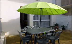 A Saint-Malo, studio de 40 m², situé au rez-de-chaussée surélevé d'une résidence, pour 2 à 4 personnes. Terrasse de 20 m² avec salon de jardin et parking privé.Location draps ou linge de toilette
