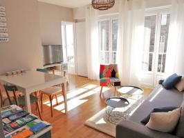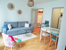 A Saint-Malo, dépaysement garanti dans ce charmant 2 pièces avec vue sur la mer, les remparts et la Cité d'Alet ; l'appartement pour 2 personnes adultes vous séduira par son confort et sa décoration. Donnant sur cour et orienté Sud-Ouest, vous profiterez de son calme et de sa luminosité.Situé au 3e étage avec ascenseur, d'une résidence sécurisée  (badge et interphone), l'appartement comprend une entrée, séjour avec canapé, cuisine séparée toute équipée, 1 chambre avec lit «King size » (160*200),  1 salle d'eau et WC séparés.Sur demande et sans supplément : garage fermé (de petite largeur : 1.80m) pour un véhicule de type citadine, compact ou petit SUV,  une moto ou des vélos.Logement non fumeur. Animaux interdits.Sans supplément : lit fait à l'arrivée, pack « produits  de base » fourni à l'arrivée.