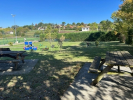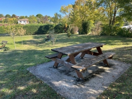 Derrière l'école, au bord de l'aire de jeux, vous trouverez quelques tables et bancs pour une pause déjeuner.