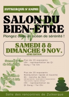 Au programme tout le week-end :Plus de 20 exposants seront présents pour vous proposer des produits, des conseils et des services autour du bien-être, de la détente et du développement personnelLe samedi et le dimanche à 15h, vous pourrez assister à une démonstration de Qi Gong / Tai Chi avec QiGong Zutkerque, disciplines douces et accessibles à tous, favorisant la relaxation et l’équilibre du corps et de l’espritLe dimanche matin à 9h, une marche solidaire de 8 km est organisée.La participation est fixée à 4€, et l’intégralité des fonds sera reversée à l’association Les orteils rigolos d’EliasTout au long du week-end, une restauration rapide ainsi qu’une buvette seront à votre disposition pour profiter pleinement de votre visite.