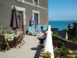 A Cancale, maison indépendante vue mer classée 3 étoiles pour une capacité de 2 à 8 personnes.Cuisine bien équipée, pièce de vie avec salon et séjour de 44 m² avec vue mer, 5 chambres, 2 salles de bains, 3 WC. Belle terrasse vue mer : salon de jardin et barbecue. Jardin paysagé, cour avec stationnement.Proche des commodités et tous les services. Chemin de randonnées GR®34 situé à quelques pas.Animaux acceptés avec supplément.