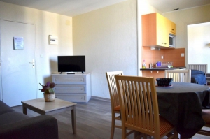 Située à 100 mètres de la plage, 400 mètres du centre de thalassothérapie, dans un quartier résidentiel, résidence avec 2 meublés spécialement conçus pour les personnes handicapées. 14 appartements et 5 studios (salle de bain ou salle d'eau), pour 2 à 4 personnes, répartis entre le rez-de-chaussée et les 4 étages (résidence avec ascenseur jusqu'au 3e étage). Possibilité de location le week end.Linge fourni.Vue mer pour certains meublés.Forfait thalassothérapie et sorties en mer proposés