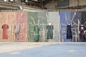 Acquise par le Frac-Artothèque en 2024, cette sculpture textile, composée de modules en toile comprenant chacun deux costumes bicolores, est représentative de la façon dont Nefeli Papadimouli combine l’architecture, la sculpture, le costume et la performance. Elle évoque l’histoire des luttes ouvrières et syndicales et s’inscrit dans les recherches de l’artiste examinant la manière dont les corps collectifs créent de nouvelles configurations spatiales et sociales. Cette œuvre monumentale a été produite par la 17ème Biennale de Lyon en 2024.Idiopolis (I-X) sera activée lors d’une performance proposée dans le cadre du symposium collection organisé par les trois Fracs de Nouvelle-Aquitaine, en partenariat avec e Centre national des arts plastiques (Cnap) et l’École Nationale Supérieure d’Art et du Design de Limoges.