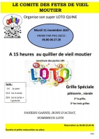 Animation assurée par Phil Deco !Venez tenter votre chance dans une ambiance conviviale et chaleureuse De nombreux lots à gagner: paniers garnis, bons d'achat, etc.Bonne humeur garantie ! Au Quillier de Vieil-MoutierBuvette et petite restauration sur place.