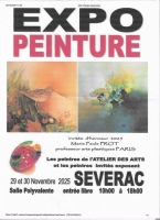 Exposition de peinture Les peintres de l'atelier des arts et les peintres invités exposent les 29 et 30 novembre de 10h à 18h, à la salle polyvalente de Sévérac Invitée d'honneur : Marie-Paule PROT professeur arts plastiques Paris Entrée libre Organisation : Atelier des Arts du pays de Sévérac