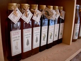Nous allons cueillir dans la nature : pissenlit, sureau, acacia, sapin, tilleul, reine des près, origan… Et cultivons : les menthes poivrées et bergamote, mélisse, hysope, verveine, serpolet, romarin,A partir de ces plantes, aux milles arômes, nous élaborons :Les Marmifleurs (gelées sucrées) : ces dernières n'ont reçu aucun agent gélifiant. Elles conservent ainsi un aspect de miel qui les différencie des autres gelées traditionnelles. Vous pouvez les consommer en nappage sur des gaufres et crêpes, sur de la glace à la vanille ou encore en accompagnement de fromages pour les amateurs de sucré-salé. Elles peuvent aussi sucrer une tisane ou une tasse de lait chaud, et bien sûr sur une tartine !Les Sirops sont à boire avec de l'eau fraîche ou chaude (délicieuse tisane sucrée), en limonade ou bien en kir ou en punch... Ils peuvent également être utilisés dans des gâteaux, dans des laitages, en coulis sur des fruits...Les tisanes fraîches sont des boissons aux plantes légèrement sucrées et citronnées. A déguster froide ou à réchauffer.