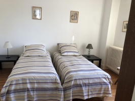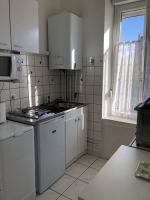 Thermes à 200 mètres, proche centre et commerces, F2 RDC dans villas avec parc, lumineux, calme, tout confort, cuisine équipée, lave-linge, douche, lits jumeaux, parking privé, non-fumeur, location de draps.