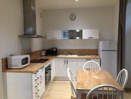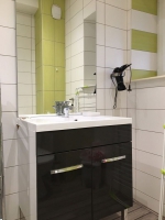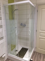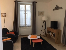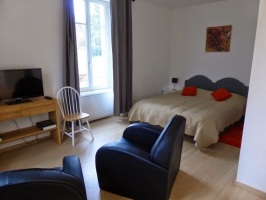 Dans villa de caractère avec parc, un grand F1 et deux grands F2 tout confort, rez-de-chaussée, et à l'étage. Proche des Thermes et commerces. Parking privatif. Animaux acceptés. Grand studio type F1, d'une surface de 42 mètres carrés, situé au rez-de-chaussée droit de la maison, il comporte :- une entrée avec placard.- une belle pièce à vivre avec 2 fauteuils, une télévision à écran plat, ouverte sur une cuisine équipée (plaque vitrocéramique, frigo avec compartiment congélateur), un coin repas avec une table et 4 chaises.- un coin chambre avec 1 lit 2 places de 160x200, 2 tables de chevet et 1 placard.- une grande salle d'eau indépendante entièrement carrelée avec cabine de douche, lavabo et toilettes. Bénéficiant d'une double exposition, vous aurez une très belle vue sur le parc et les thermes.Draps et serviettes de toilettes sont fournis sur demande avec supplément. Disponibilités en ligne sur le site internet de la villa Bellevue.