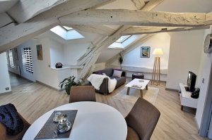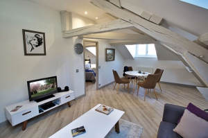 T2 spacieux et lumineux entièrement restauré dans un style moderne et chaleureux, au 2ème étage de la Maison François 1er. Situé au cœur de la ville historique, proche de tous commerces et parkings. Linge à la demande.