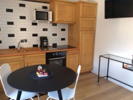 Dans maison calme en centre-ville avec jardin et parking à 7 min à pied des thermes. 100m du centre ville et de tous commerces.F1 tout confort 1er étage avec balcon : l'ALOUETTE *** chambre lit en 140, pièce à vivre avec cuisine équipée, télévision, wifi, salle de bain et WC séparé.- 1 place de parking privé par logement.Buanderie, salon de jardin, salon de détente extérieur, barbecue. Aspirateur balai dans chaque logement.