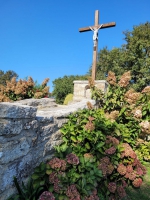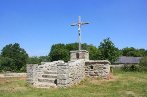 Le calvaire est édifié en 1862, date à laquelle le village compte une centaine d'âmes.Si les puristes parleront de "crucifix" (le Christ n'est ici entouré d'aucun autre personnage biblique), la tradition, elle, a donné à ce monument le nom de calvaire. Il a été restauré par l'Association Histoire et Patrimoine. Près du calvaire, existe, en parfait état, la rigole d’un ancien piloir à pommes, destiné à écraser les pommes afin d’en extraire ensuite le jus pour en faire du cidre. Dans ce couloir de 10 m de diamètre roulait une grande pierre circulaire de 1,80 m de diamètre (certaines roues de piloir étaient en bois) ; tirée soit par des chevaux, soit par des bœufs, cette roue a disparu.Le piloir est composé de 23 blocs de granit, le plus long mesure 2,10 m de long et pèse 3 tonnes, l’ensemble doit peser environ 30 tonnes !Informations : https://www.villagedevalais.fr/