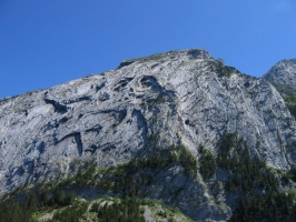 En regardant vers la montagne du Bargy, vous découvrirez ses yeux ... Oui, il nous surveille !Lorsque l'on se rend de Mont-Saxonnex au lac Bénit, au moment de franchir la dernière éminence avant de plonger sur le lac, on ne peut manquer de lever les yeux sur la paroi nord-ouest du Petit Bargy. C'est là que l'on aperçoit ces deux cavités qui, séparées par un éperon font immédiatement penser à un visage : ce sont les "yeux" et le "nez" du Bargy.
