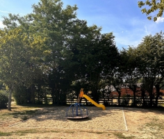 A proximité immédiate de la D926 et du canal latéral à La Loire, cette aire ombragée offre un parking, des tables de pique nique et un espace de jeux pour les enfants.